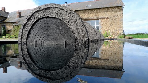 Installation de deux éléments de Ø85 x 40 cm - Ciment, galets